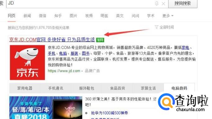 首先搜狗搜索京东。