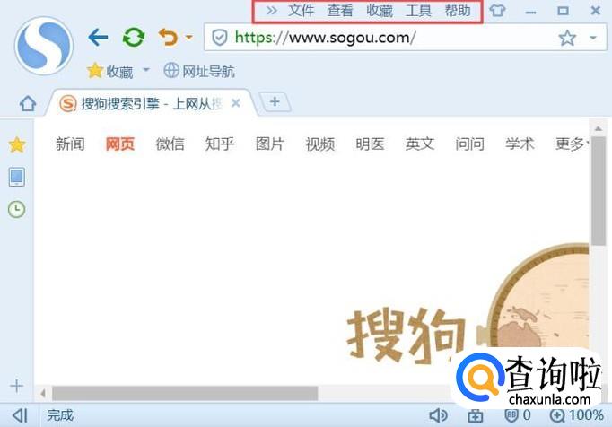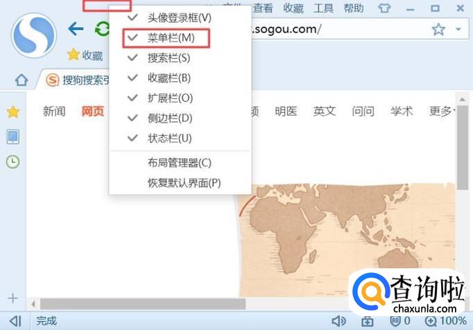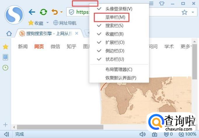 进入浏览器之后,我们可以看到系统默认的菜单栏是打开的,如图所示;