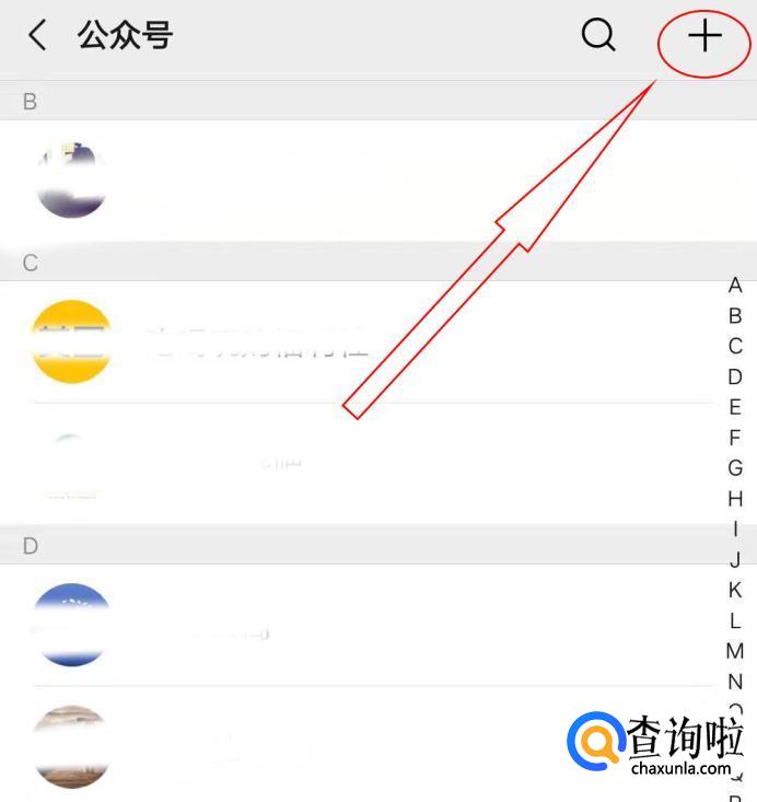进入公众号专属页面后,点击右上方的“+”。