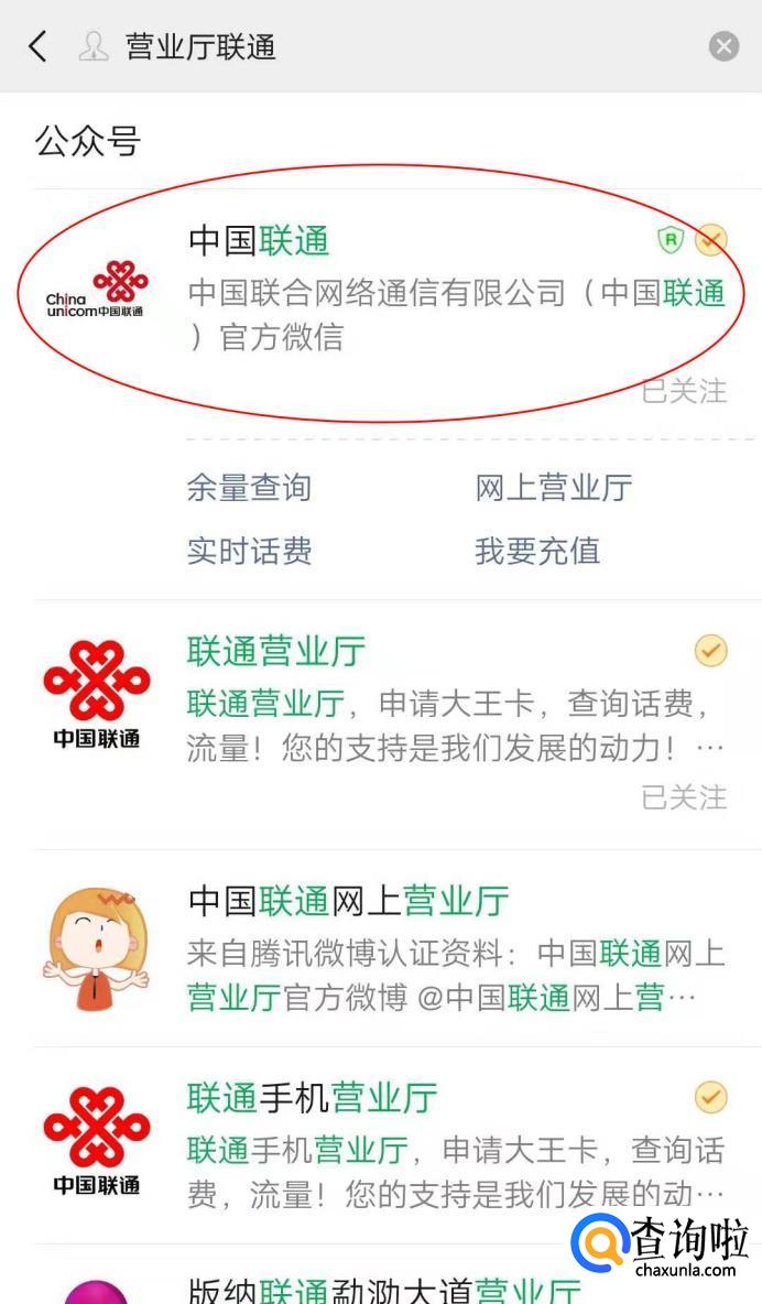 点击关注,进入公众号,这里以联通为例。