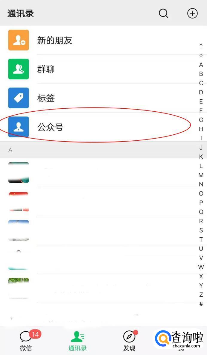 这时我们要在微信通讯里找到“公众号”。