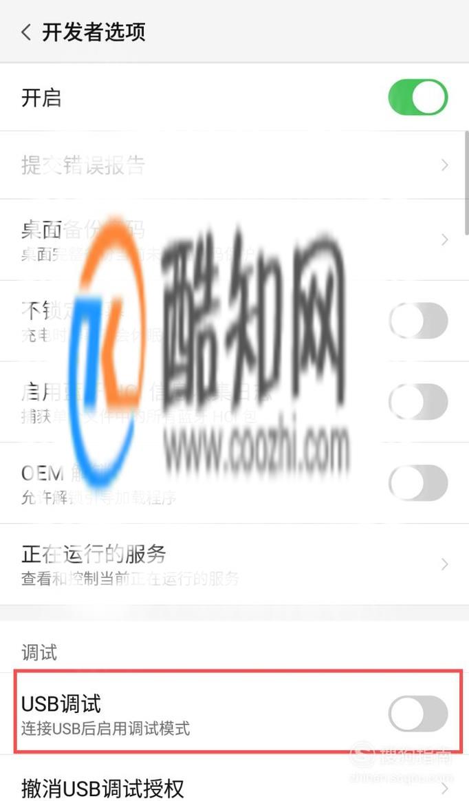 在页面里找到USB调试功能,开启USB调试功能。