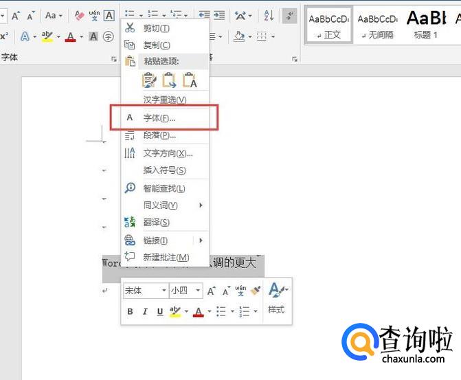 方法二:选中这些字,点击鼠标右键,选择“字体”。