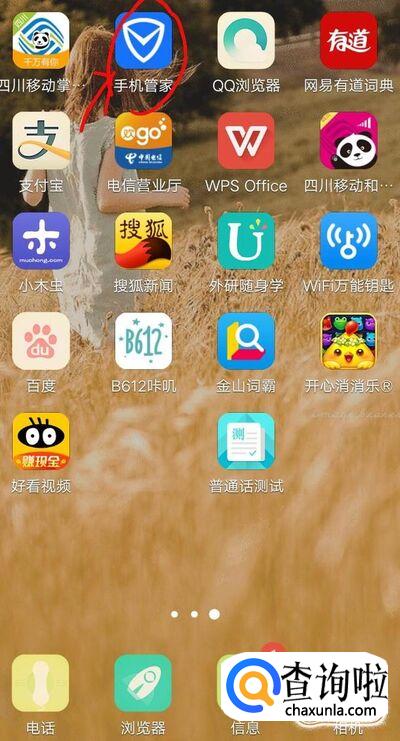 打开手机,找到“手机管家”,点击“手机管家”打开此文件