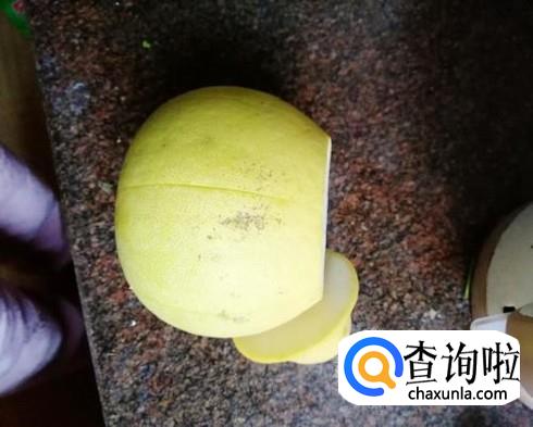 划好一圈后,用勺子或手将底部的柚子皮去掉。
