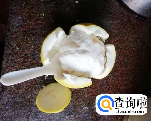 划开后,用手或勺子剥开柚子皮,将柚子皮去掉,柚子就剥好了。