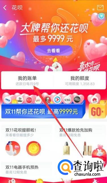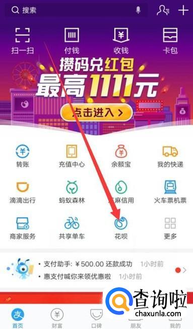 进入之后,点击“花呗”,进入下一页面,如图所示。