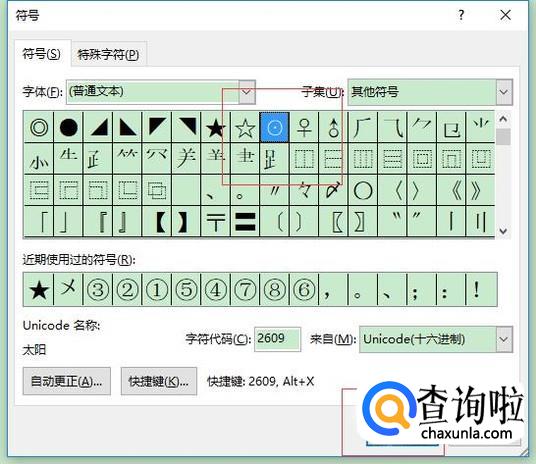 在弹出的符号中选择圆圈里面加一点的符号,点击插入,如图。