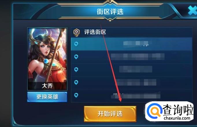 进入之后,选择好评选英雄和评选的街区,点击“开始评选”。