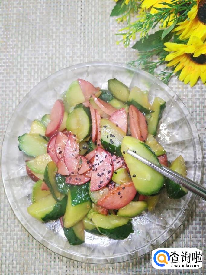 西葫芦适量,黄瓜适量,香肠适量,黑芝麻适量,姜适量,蒜适量,干辣椒适量,盐适量,鸡精适量,五香粉适量,生抽适量,陈醋适量,白砂糖适量,黑芝麻适量。