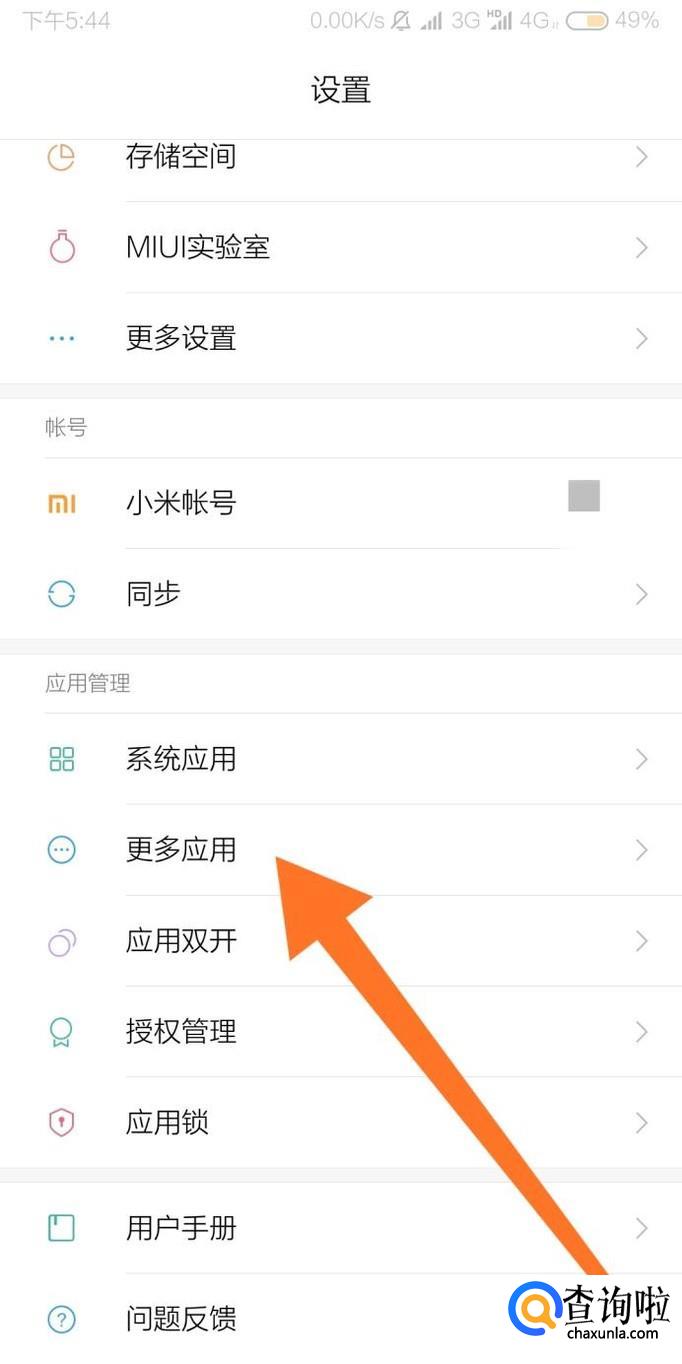 然后找到“更多应用”设置选项,点击进入。