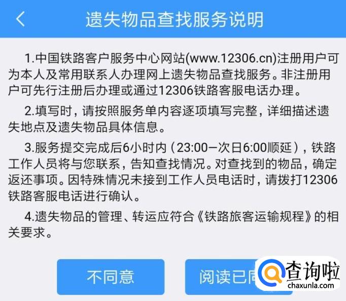 打开遗失物品查找,首先仔细查看遗失物品查找服务说明。