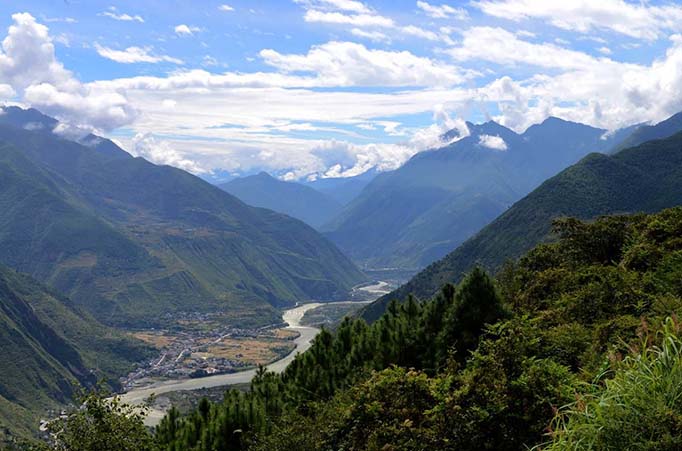 大渡河,古称北江、戢水、涐水、沫水、大渡水、濛水、泸水、泸河、阳、阳山江、 羊山江、中镇河、鱼通河、金川、铜河。位于中华人民共和国四川省中西部,历史上被作为中国长江支流岷江的最大支流。但从河源学上应为岷江正源。大渡河发源于青海省玉树藏族自治州境内阿尼玛卿山脉的果洛山南麓,上源足木足河(其上源为麻尔柯河、阿柯河,在久治县)经阿坝县于马尔康县境接纳梭磨河、绰斯甲河(杜柯河、多柯河)后称大金川,向南流经金川县、丹巴县,于丹巴县城东接纳小金川后始称大渡河,再经泸定县、石棉县转向东流,经汉源县、峨边县,于乐山市城南注入岷江,全长1062公里(一说1050公里),流域面积7. 77万平方公里,大渡河支流较多,流域面积在1000平方公里以上的28条,10000平方公里的2条,河网密度0. 39。