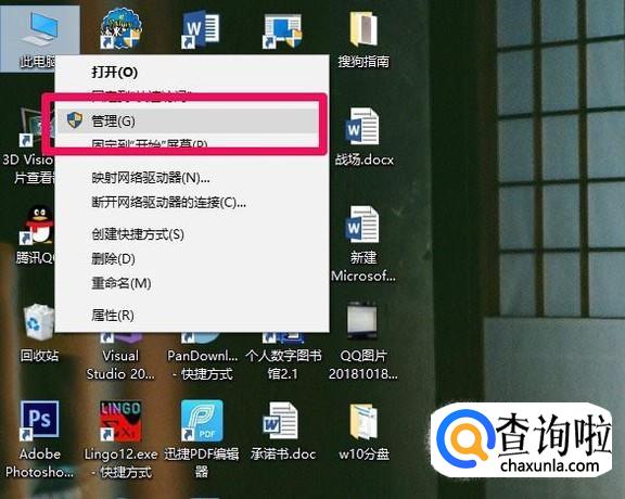 在打开电脑后先让电脑运行稳定,然后右击此电脑(在有些电脑中显示的是【我的电脑】),在弹出框中选择【管理】,然后会弹出计算机管理窗口。