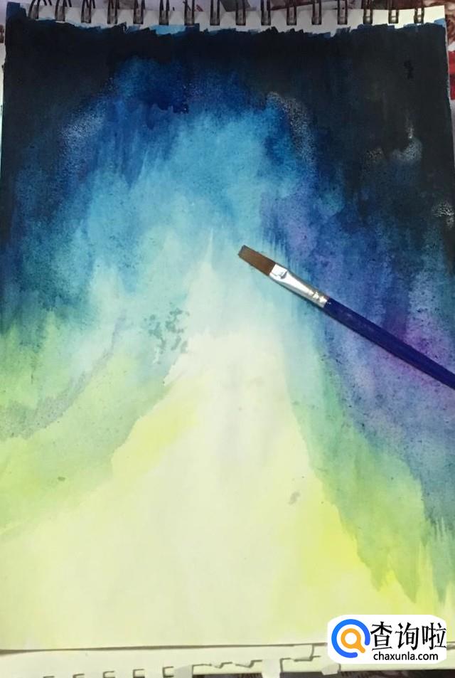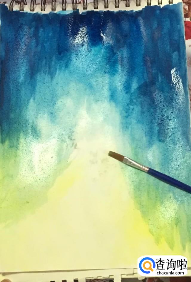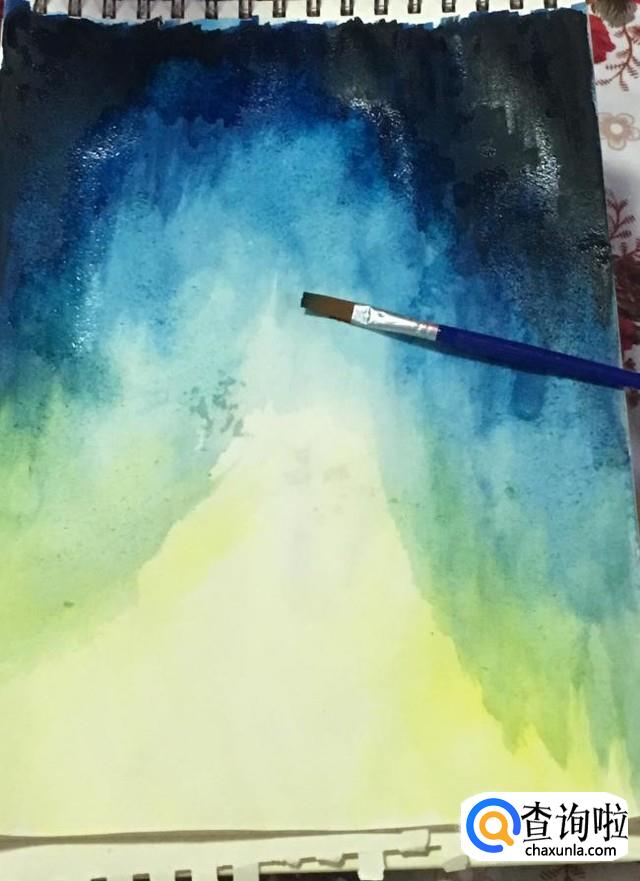 最后再拿干净的画笔蘸水把之前颜色交接的部分抹匀就可以了。