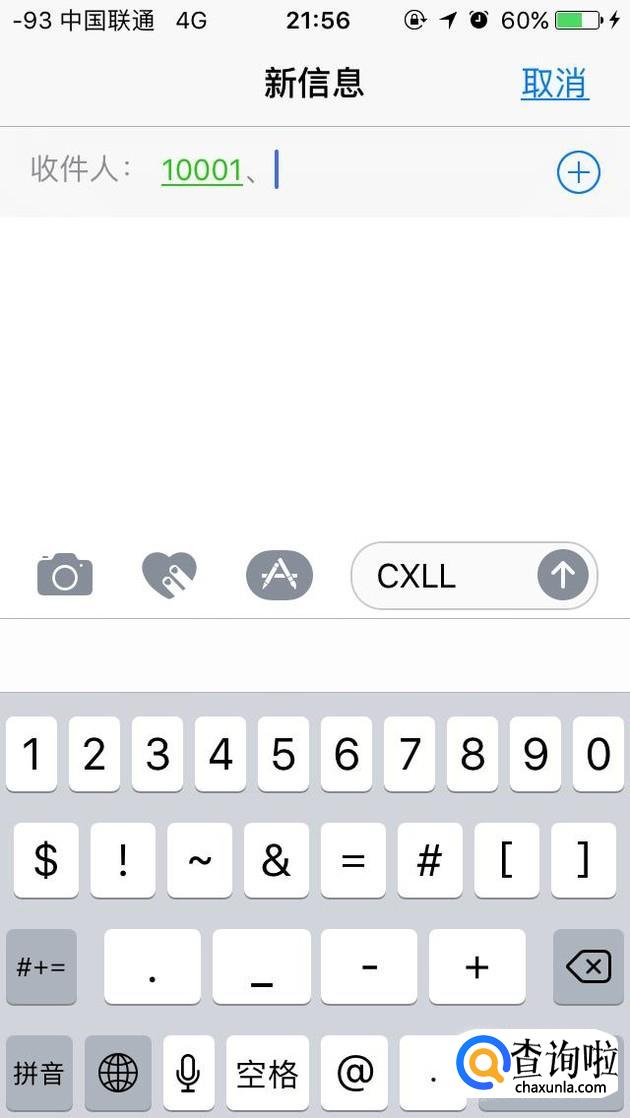 我们可以直接编辑短信CXLL发送到10001进行查询。