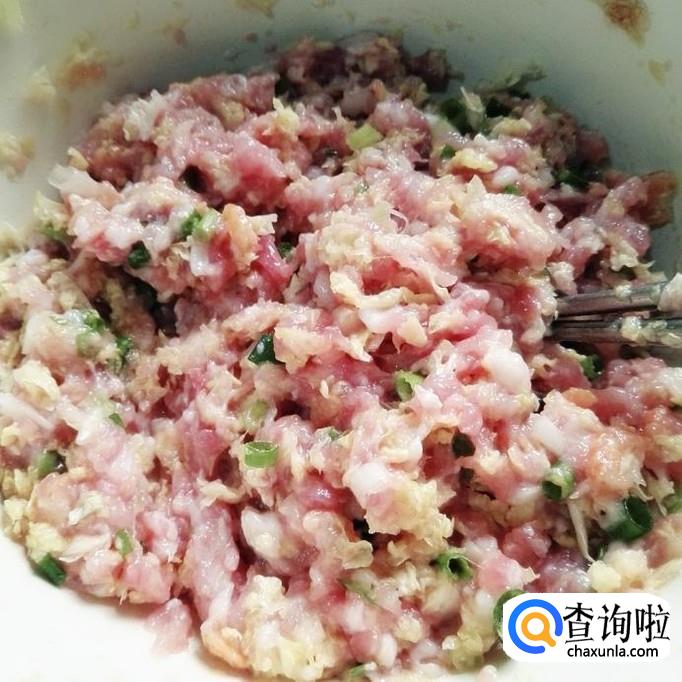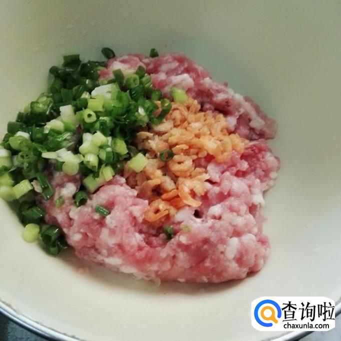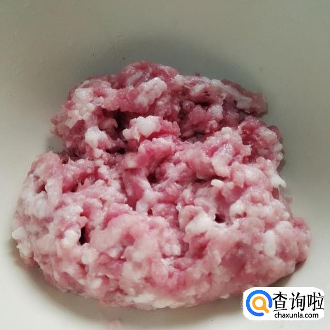 先把猪肉放在绞肉机里面绞成肉泥,再把虾仁取出来泡软。