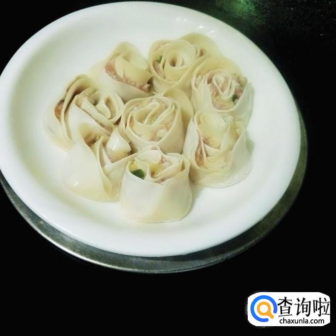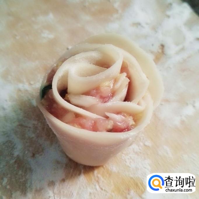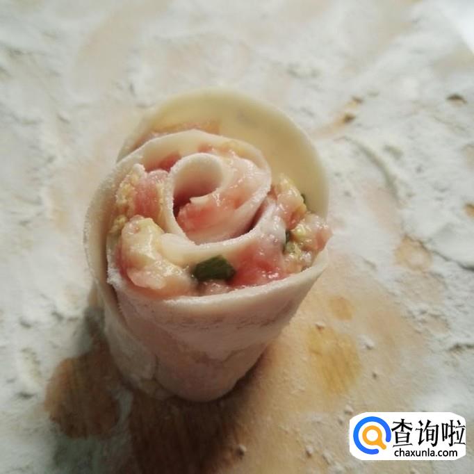 做玫瑰饺子,最少是用三张皮,最多用五张饺子皮,少了卷不起来,多了很难熟。
