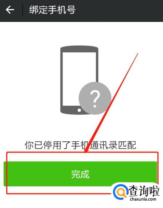 最后弹出已停用手机通讯录匹配的界面,点击“完成”就可以了。