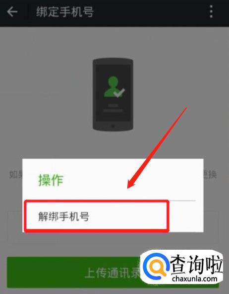 在弹出的对话框中,选择“解绑手机”。