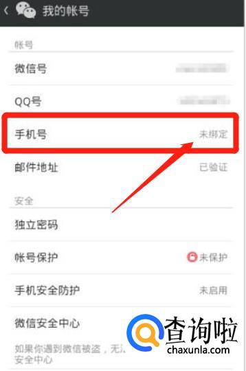 手机绑定的一栏显示的是“未绑定”,这样手机号码就可以重新申请微信号了。