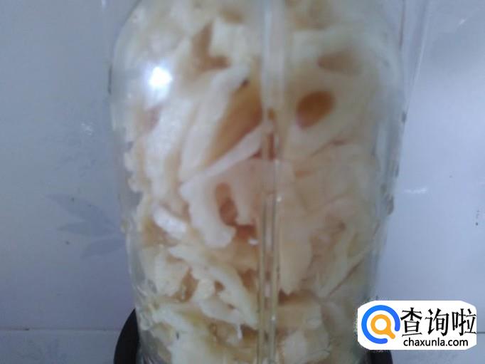 然后把莲藕去皮,切成小片放水清洗一下,放到打浆机打成浆末。