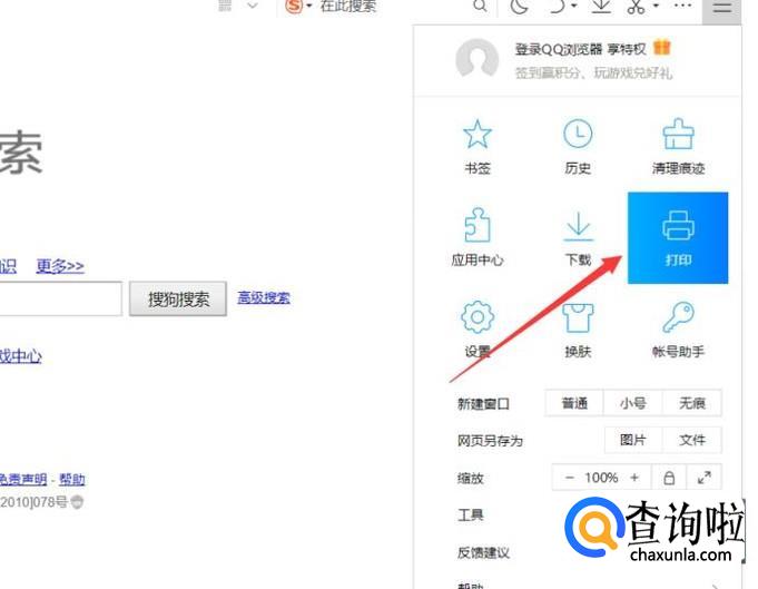 点击浏览器右方的设置,如下图所示,三条横线的位置,展开后选择打印