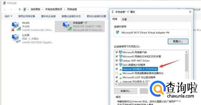 右击鼠标选择属性,进入设置菜单,选择IPv4