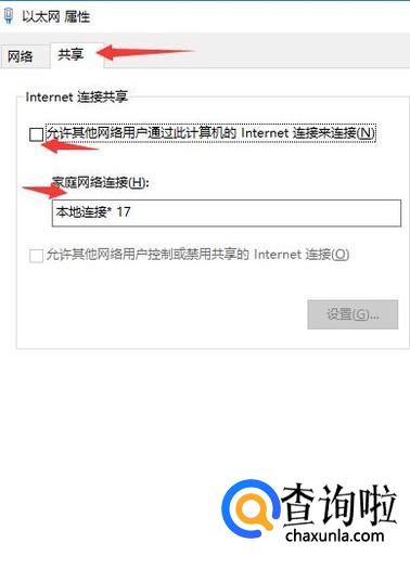 属性菜单页面选择网络共享,允许其他计算机网络通过此网络共享打上勾,下面选择要共享的热点网络,设置好点击保存即可。