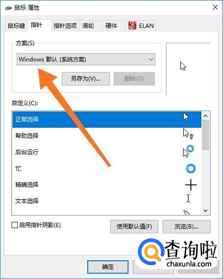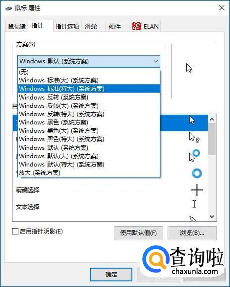 在“指针”设置页面可以更换不同的指针样式。