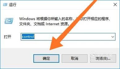 首先同时按下电脑键盘的“Win”+“R”键,进入到“运行”。然后输入“control”,点击“确定”。