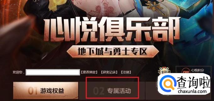 在心悦俱乐部地下城与勇士特权专区界面,点击“专属活动”选项。