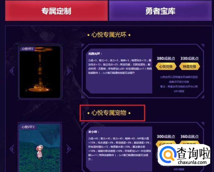 即可在我的成就点下方的“专属定制”一栏中,消耗一定的成就点数兑换心悦专属宠物“羊小咩”。