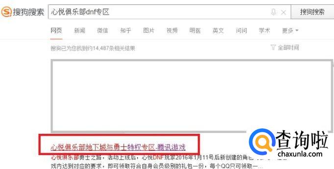首先,使用搜狗搜索“心悦俱乐部DNF专区”,在搜索结果中点击进入“心悦俱乐部地下城与勇士特权专区”。
