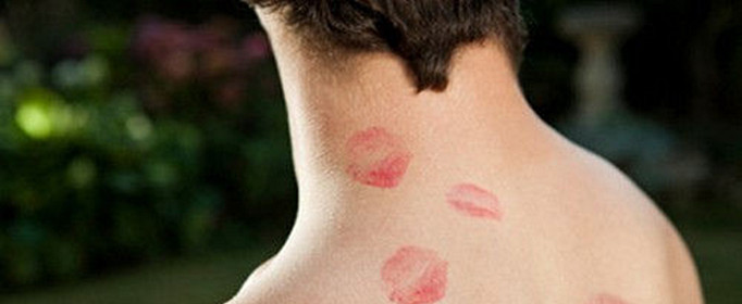 唇的印记,学名称为“机械性紫斑”,主要成因是皮下微血管在遇到强大吸力下的破裂出血。最常见是发生在脖子,该部位皮肤比较薄,亲吻如果很激烈,很容易就会留下明显痕迹。