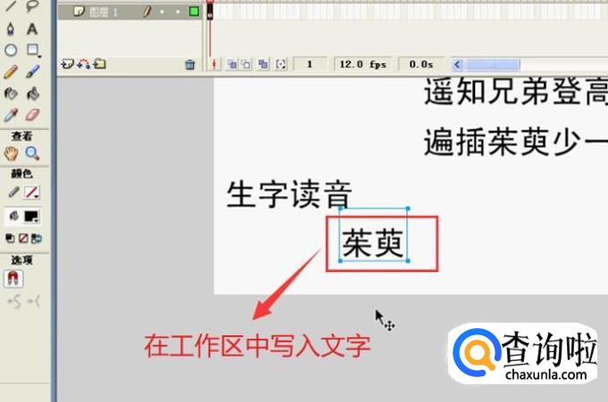 首先我们打开Flash软件,接着在工作区中写上要配音的文字,如下图所示