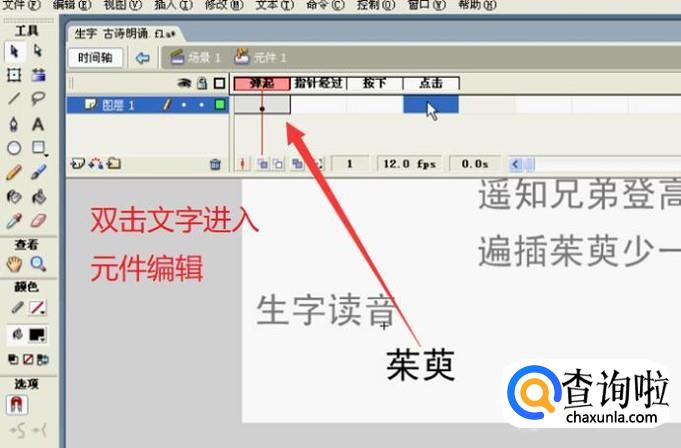 接着我们双击文字进入元件编辑区域,接下来就需要在此区域中进行配音,如下图所示
