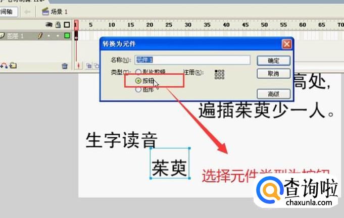 然后在弹出的转换为元件界面,我们选择元件类型为按钮,如下图所示