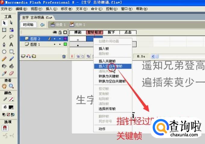 然后我们在指针经过区域右键单击选择插入空白关键帧,如下图所示