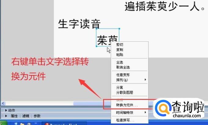 接下来右键单击文字,选择转换为元件选项,如下图所示