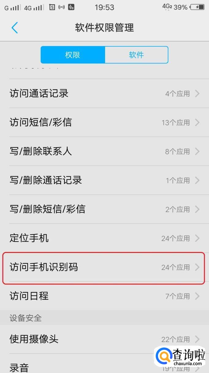 接着,点击“软件权限管理”,在其中找到“访问手机识别码”。