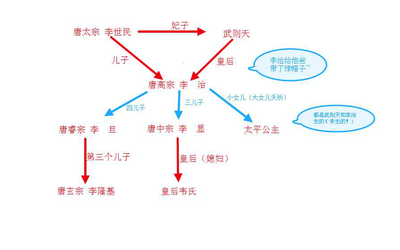 唐玄宗李隆基是唐睿宗李旦第三子,故又称李三郎,母窦德妃。李旦是唐高宗与武则天所生第四子。李治是唐太宗李世民第九子,嫡三子,其母为文德顺圣皇后长孙氏。唐玄宗和李世民中间隔了两代人,所以唐玄宗是李世民的曾孙。
