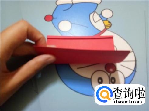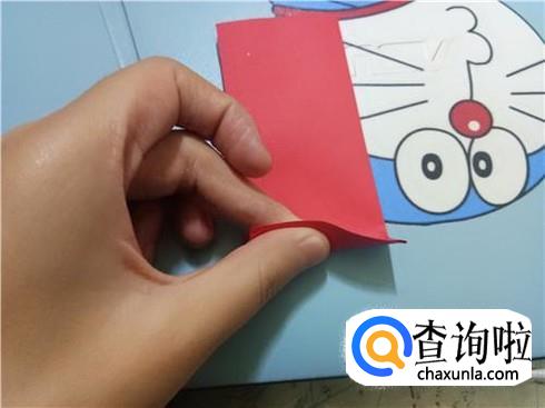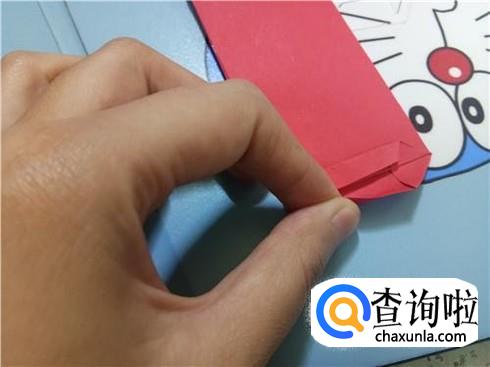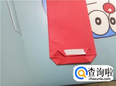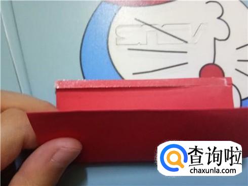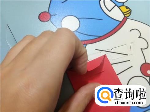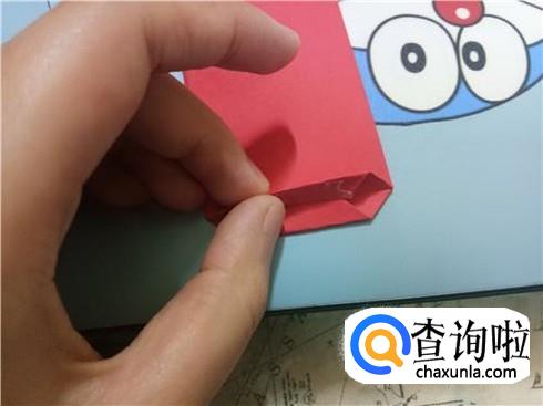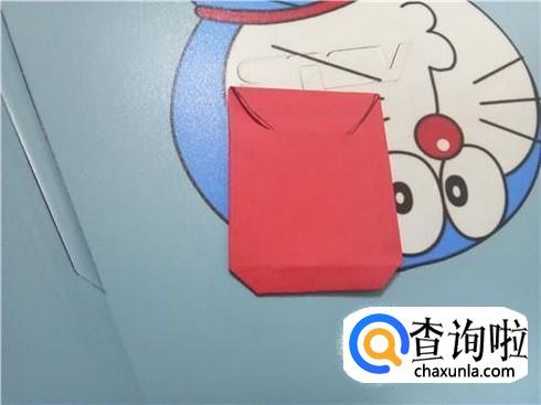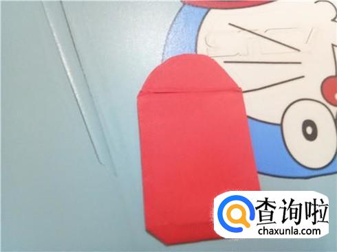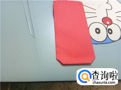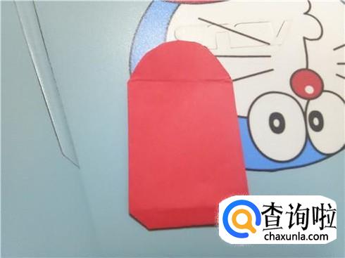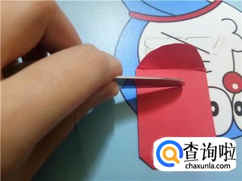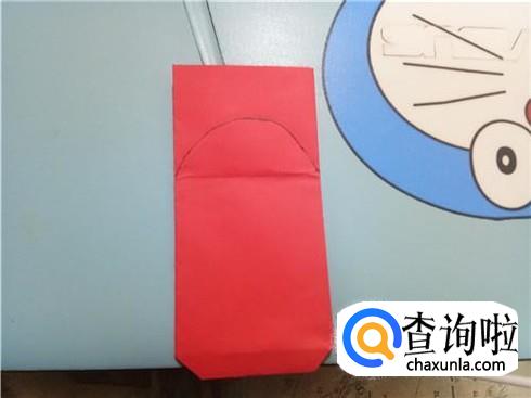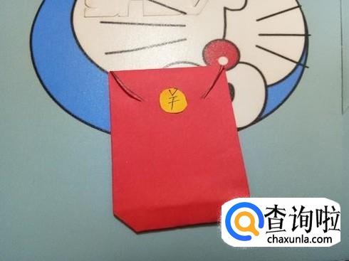 最后,在下边用小刀开一个口,将上边的半圆拉下来放进口里面,并且将之前准备的小圆圈粘在开的口上面,这样一个红包就折好了。