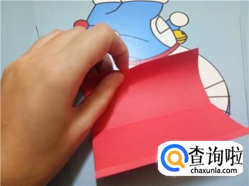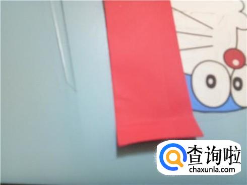 然后,我们沿着刚才对折的中轴线折叠过去,并且用双面胶将刚才折叠的两个小部分粘贴在一起。