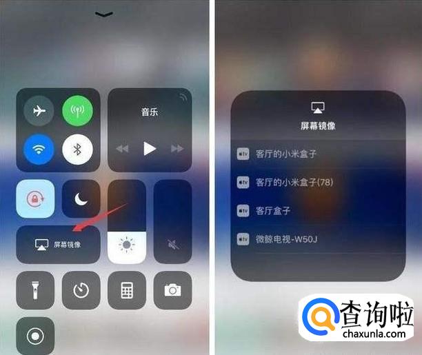 接着我们需要把苹果手机的屏幕镜像找到,现在的屏幕镜像就在手机的下菜单栏里面。