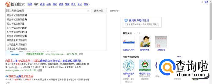 打开搜狗浏览器,然后搜索你自己所在的招生考试信息网。