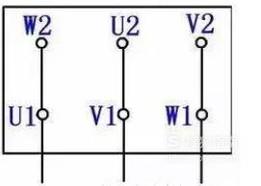 星三角连接包括两种接线方式,即星形连接和三角形连接。电动机一般共有6个接线柱,分别为U1,U2,V1,V2,W1,W2。如下图所示: