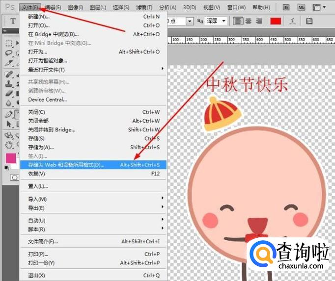 修改完成后,我们左上角的“文件”弹出菜单继续点击“存储为Web和设备所用的格式”进行保存就修改完成了。
