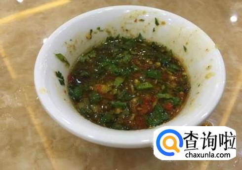 取一小碗,放入盐,酱油,香油,蒜末,香菜等搅拌均匀,制成酱料。