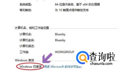 在系统页面的最下方Windows激活选项中即可看到激活状态了,比如下图中显示为“已激活”;